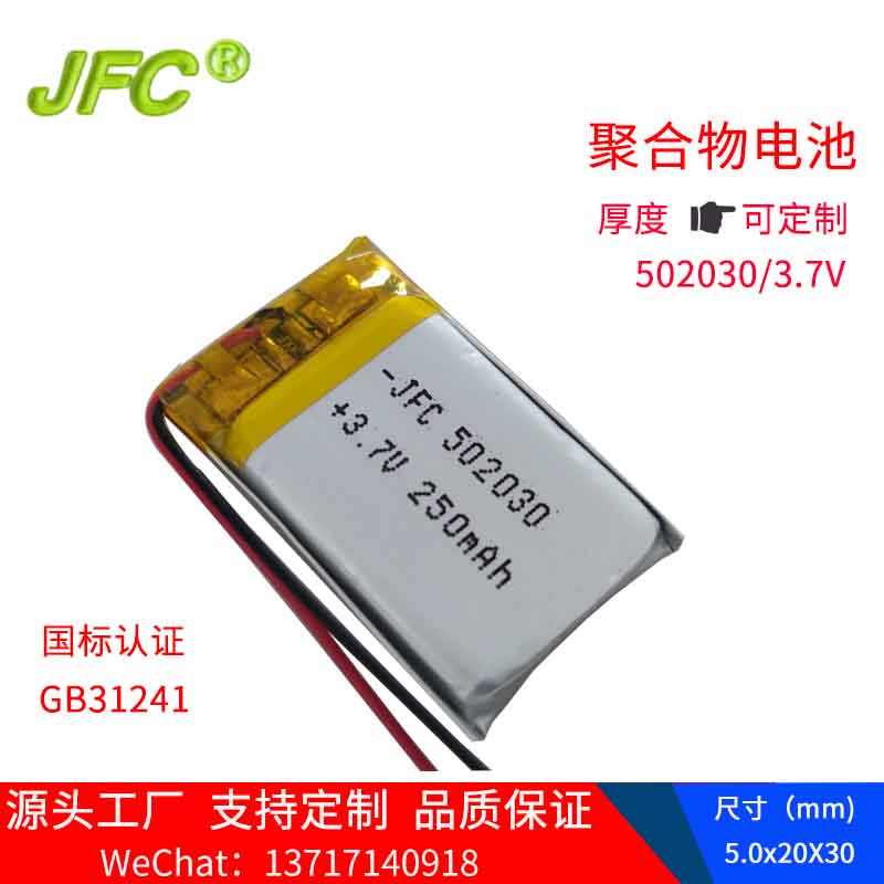 GB31241认证齐全电池 深圳杰富承国标认证电池 502030 3.7V 250MAH