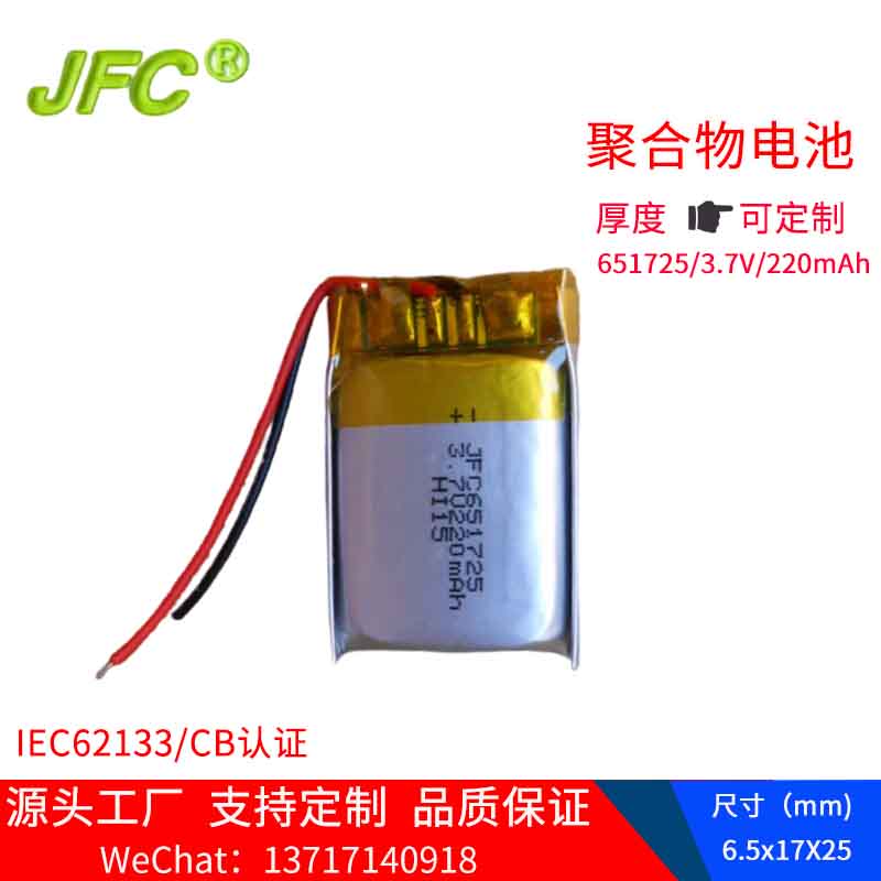 无线键盘电池 3.7V 601725,220MAH锂聚合物电池,
