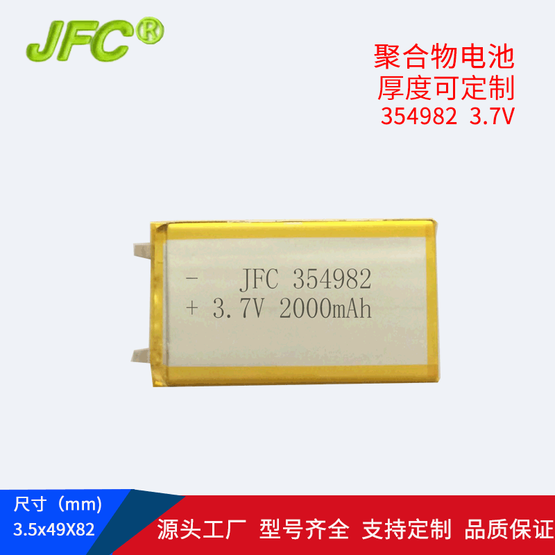 354982 USB太阳能灯电池 3.7V 2000mAh空调服电池 扫描枪电池